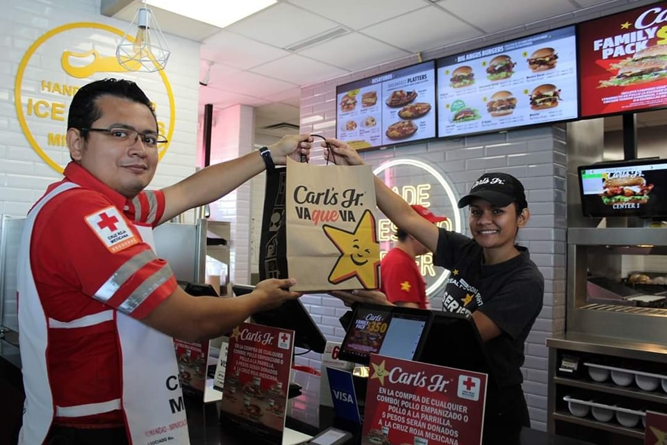 Mérida, Yucatán.- A partir del primero de septiembre y hasta el primero de noviembre, los restaurantes Carl´s Jr de la ciudad, donarán cinco pesos por cada venta de combo de pollo empanizado o de pollo a la parrilla a beneficio de la Cruz Roja Mexicana Delegación Yucatán.