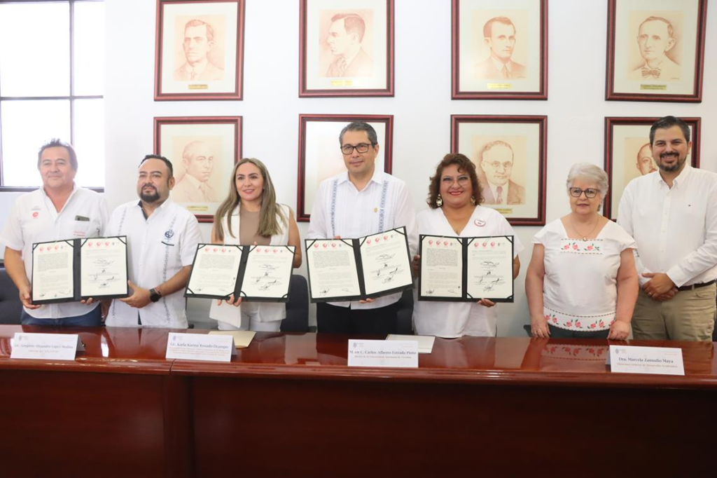Durante el acto, el rector de la UADY, Carlos Alberto Estrada Pinto, aseguró que la alianza permitirá complementar la formación que se le brinda al estudiantado y abonar al desarrollo de trabajadores y familiares.