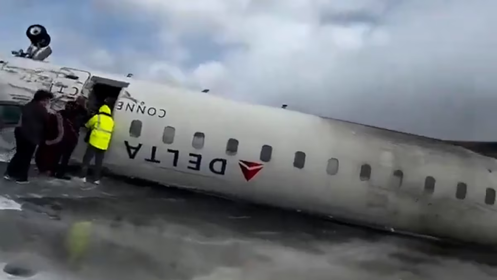 El cielo sobre el Aeropuerto Internacional Pearson de Toronto es un mosaico de nubes dispersas y azul pálido. Abajo, la pista se extiende como un desierto blanco, cubierta de nieve helada. En el video, grabado desde otro avión en la pista, la respiración del hombre que filma se vuelve más agitada cuando una aeronave de Delta Airlines aparece en el encuadre, descendiendo con un ángulo levemente inestable.