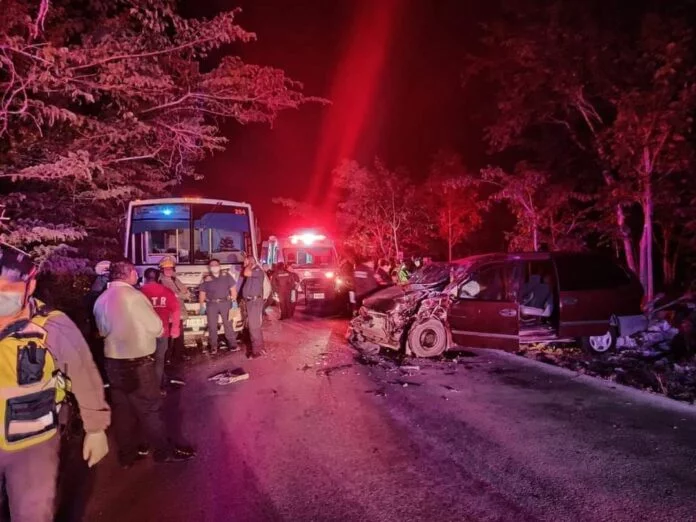 El incidente tuvo lugar a pocos kilómetros del municipio de Cacalchén, cuando el conductor de una Chrysler Voyager, presuntamente bajo la influencia del alcohol, invadió el carril del camión de pasajeros, provocando una colisión.