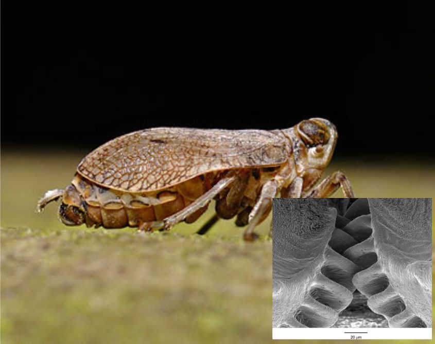 Uno de los más sorprendentes descubrimientos de esta capacidad modeladora de la naturaleza, fue hallado en forma de engranajes dentados en las patas de un pequeño insecto, un mecanismo poco de imaginar en un organismo.