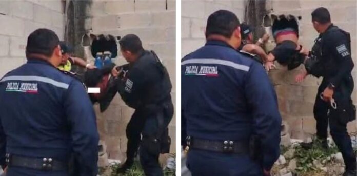En la colonia Sampol de Hunucmá, un joven de 21 años, identificado como Ángel Gabriel C. C., protagonizó un curioso intento de robo en una tienda que se encontraba cerrada. Bajo los efectos de un estupefaciente, el sujeto decidió abrir un hoyo en la pared del local para sustraer mercancía.