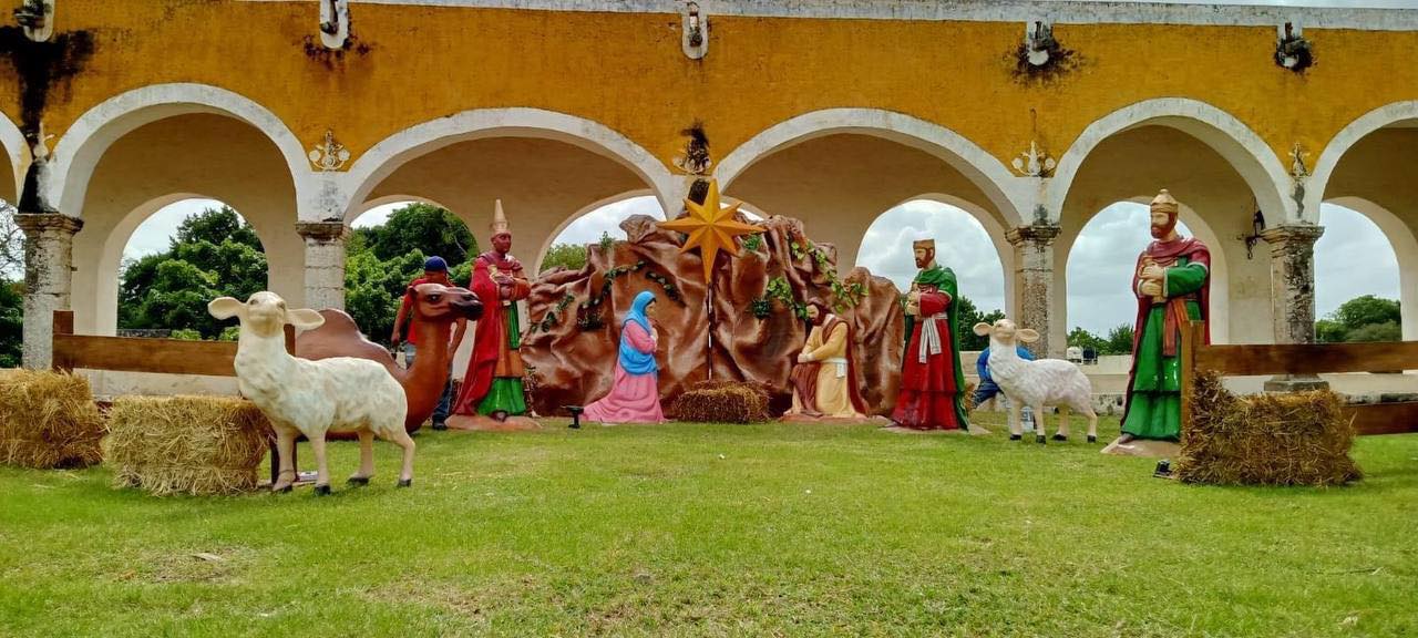 El atrio del exconvento, un importante sitio histórico y cultural en Yucatán, ahora se convierte en un atractivo para yucatecos y turistas que podrán disfrutar de este nacimiento gigante durante la temporada navideña. La majestuosidad de las figuras y la esencia de la tradición navideña se fusionan para ofrecer un espectáculo visual que celebra la llegada de la Navidad en la bella ciudad de Izamal.