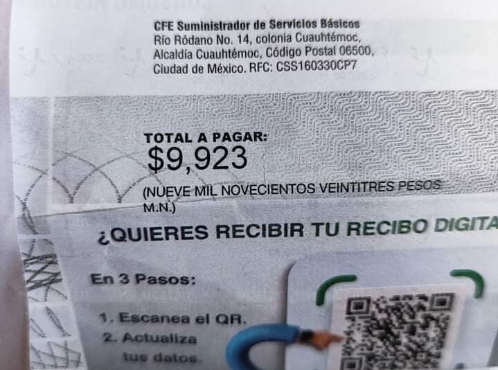 La ciudadana Angy pasa momentos angustiantes ante la llegada de su recibo de Luz en el que le tendrá que pagar a la CFE la cantidad de $9,923 pesos, casi $10 mil pesos. Ella Vive en el Fracc. Francisco Villa de Oriente en Kanasín.