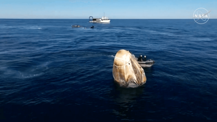 El martes por la tarde, aproximadamente a las 17:57, la tripulación amerizó con éxito en el recién rebautizado “Golfo de América” bajo la presidencia de Donald Trump. Esto ocurrió tras una secuencia de “salida de órbita” y un “período de apagón” durante el cual la tripulación perdió la comunicación al iniciar su reingreso a la atmósfera interior de la Tierra.