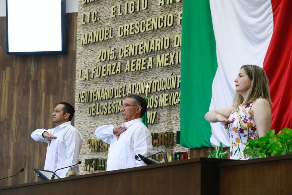 Esto ante la presencia del secretario General de Gobierno, maestro Omar David Pérez Avilés en representación del gobernador Constitucional, maestro Joaquín Jesús Díaz Mena; de la representación del Tribunal Superior de Justicia, la licenciada María Carolina Canto Valdés, así como de las y los diputados integrantes de la LXIV Legislatura, autoridades estatales y militares.