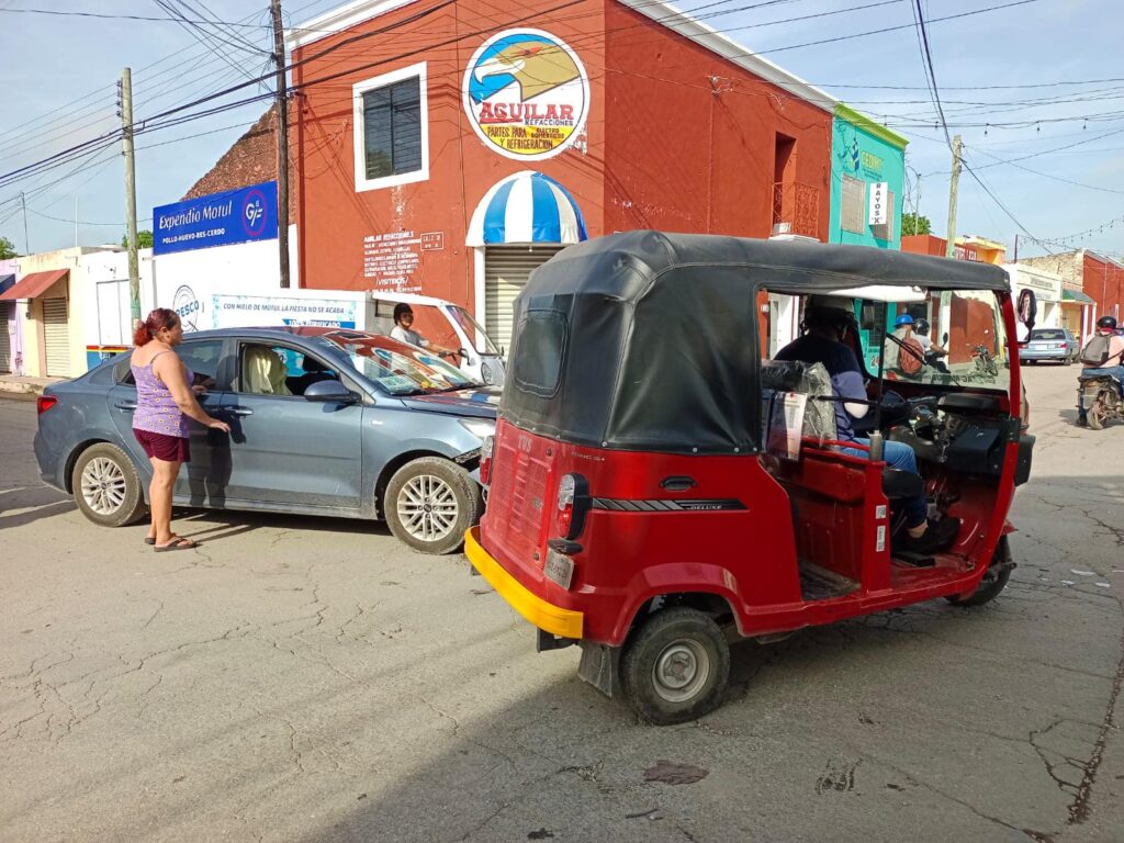Motul.- Un accidente vial se registró esta mañana en la ciudad de Motul, cuando un mototaxista del sindicato ZaacMutul no respetó la luz roja del semáforo, resultando en una colisión con un automóvil. Afortunadamente, el incidente solo dejó daños materiales y no hubo heridos entre los involucrados.