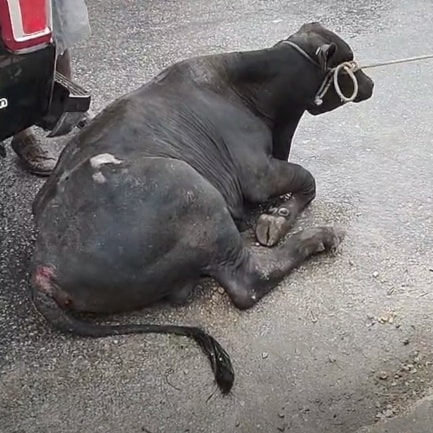 RESCATAN A “AZABACHE”, UN TORO QUE CAYÓ EN UNA LÍNEA DE REGISTRO EN TIZIMÍN