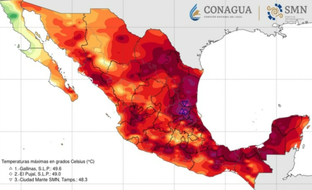 Querétaro, Tlaxcala y Ciudad de México tendrán temperaturas de entre 30 y 35 °C. Mientras que Baja California, Baja California Sur, Sonora, Chihuahua, Coahuila, Nuevo León, Zacatecas, Durango, Aguascalientes, Hidalgo, Guanajuato y Estado de México (suroeste) 35 a 40 °C.