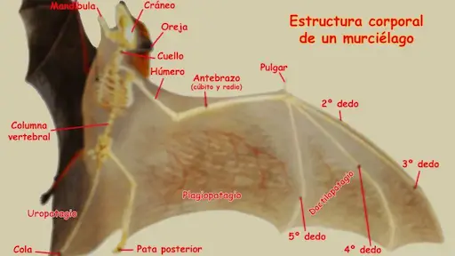 Son los únicos mamíferos que están adaptados al vuelo. Entre los dedos, muy alargados, el cuerpo y las patas posteriores, se extiende un pliegue de piel a la manera de un ala. Dicha membrana se denomina patagio.