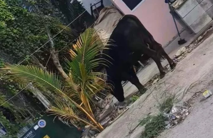 El inesperado visitante generó un gran susto entre los vecinos, quienes no esperaban encontrarse con un toro de estas características deambulando por su fraccionamiento. El animal, conocido por su fortaleza y presencia imponente, fue captado paseando de manera inusual por las calles del lugar.
