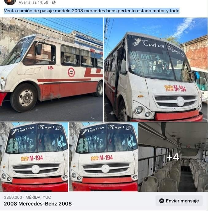 El usuario que realizó dicha oferta precisó: “Venta camión de pasaje modelo 2008 Mercedes Benz perfecto estado motor y todo”, esto a pesar de que en las fotografías es notorio el estado deteriorado de los vehículos, lo cual ha generado diversos comentarios en dicha publicación.